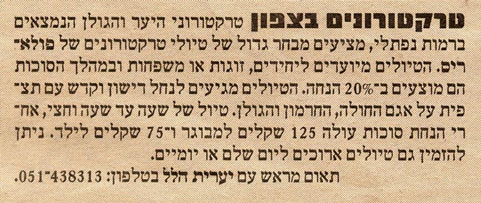 מחפשים אטרקציות מלהיבות ומיוחדות בצפון? מעוניינים בחוויה מלאת אדרנלין בנופים הכי יפים בארץ? טרקטורוני היער והגולן מזמינים אתכם לחוויה משכרת חושים המשלבת אתגר מוטורי בטבע פראי ומול נופים עוצרי נשימה, מתחושה של חופש ומרחב וממגוון אטרקציות ופעילויות לכל גיל.אנו מציעים חיבור בין האדם, הטכנולוגיה והטבע, עם שפע פעילויות המתאימות לכל המשפחה, לזוגות בכל גיל, לחברים ולקבוצות מכל הסוגים, לרבות קבוצות המגיעות ליום כיף או ליום גיבוש.